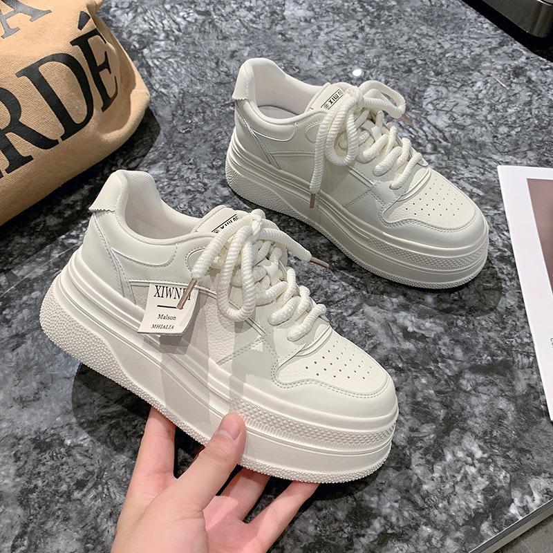 Женские туфли на толстой подошве, увеличивающие рост, из натуральной кожи, 2024, новые повседневные универсальные туфли-маффины, супер-огненные белые туфли — купить товар онлайн с бесплатной доставкой до всему миру!