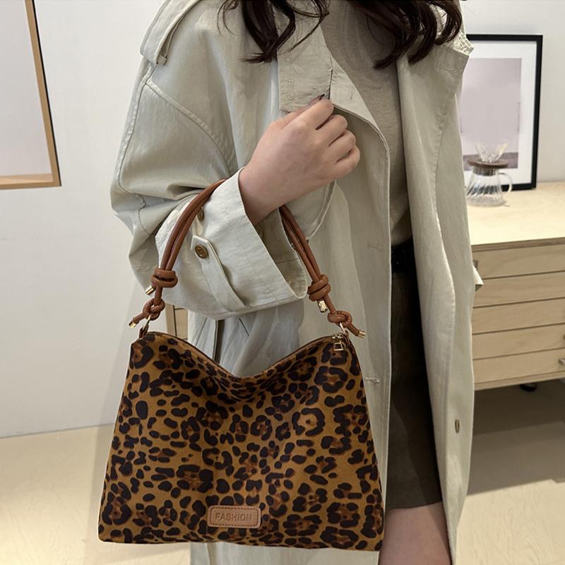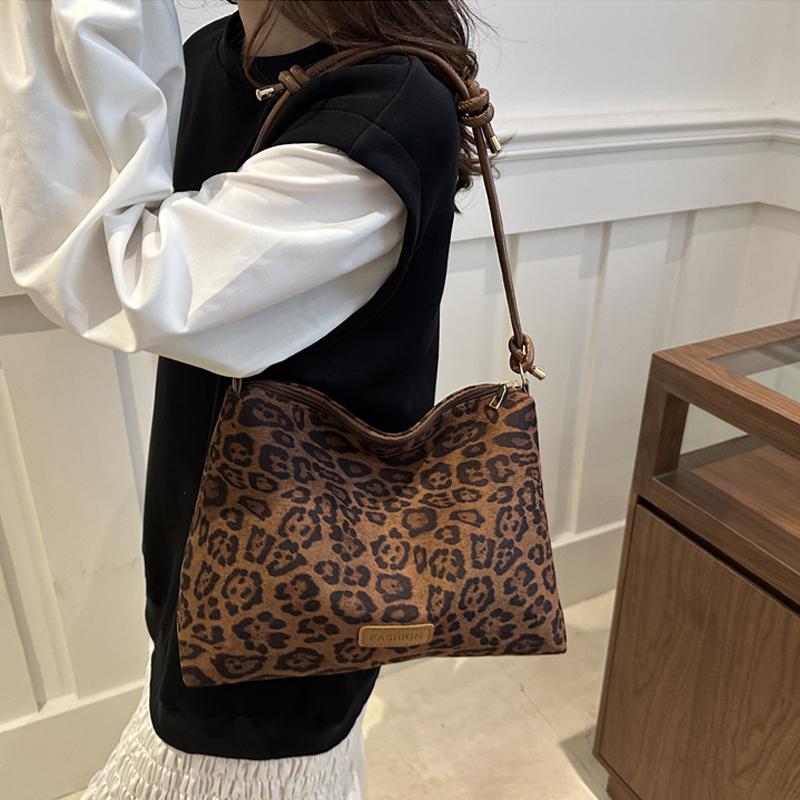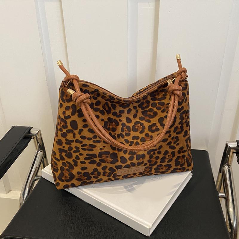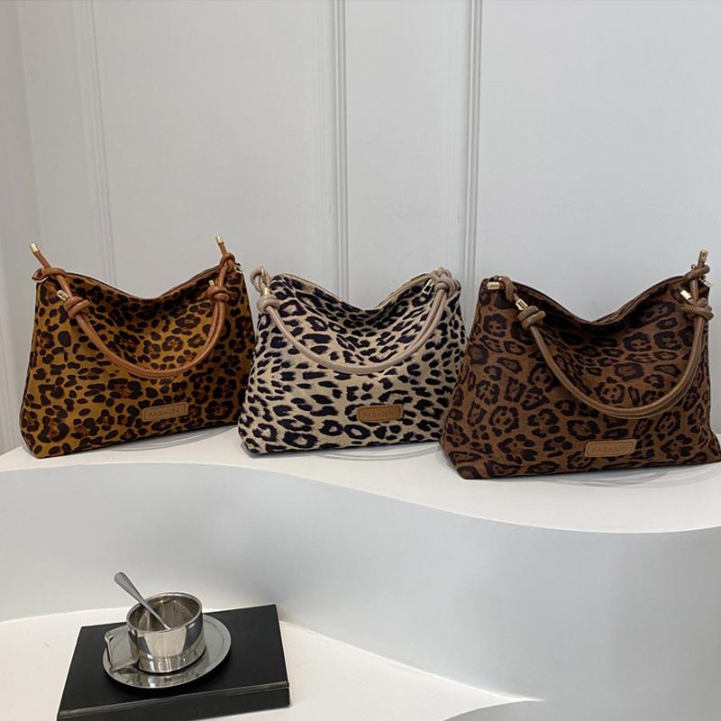 Осень-зима Новые женские сумки большой вместимости Модные сумки с леопардовым принтом Премиум-текстура Универсальные сумки для поездок на работу на плечо подмышки