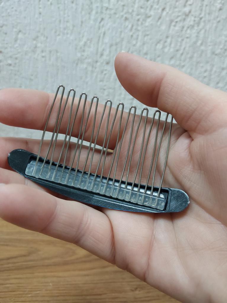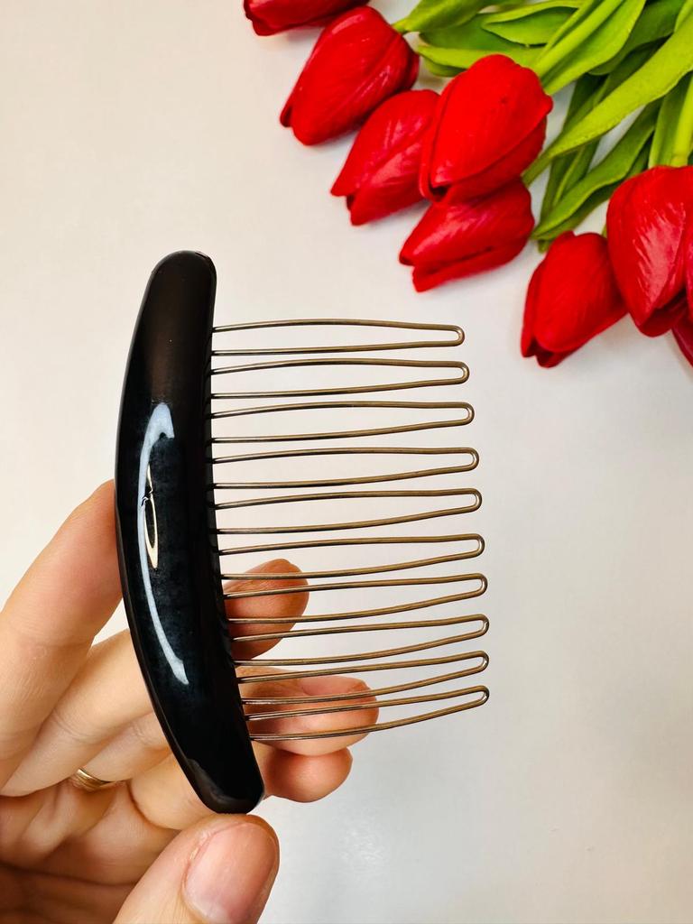Гребень для волос: идеальный аксессуар для вашего образа Этот гребень прекрасно подходит для того, чтобы аккуратно спрятать выбившуюся прядь, придавая вашему образу завершённость. Кроме того, гребень можно использовать для украшения пучка или просто для расчесывания волос — он легко справляется с любой задачей. Изготовленный из прочного пластика с шпильками из нержавеющей стали, он сочетает в себе стиль и долговечность. Минималистичный дизайн делает его универсальным аксессуаром, который будет отлично смотреться с любым нарядом. Рекомендую к покупке всем, кто ценит качество и элегантность в деталях!