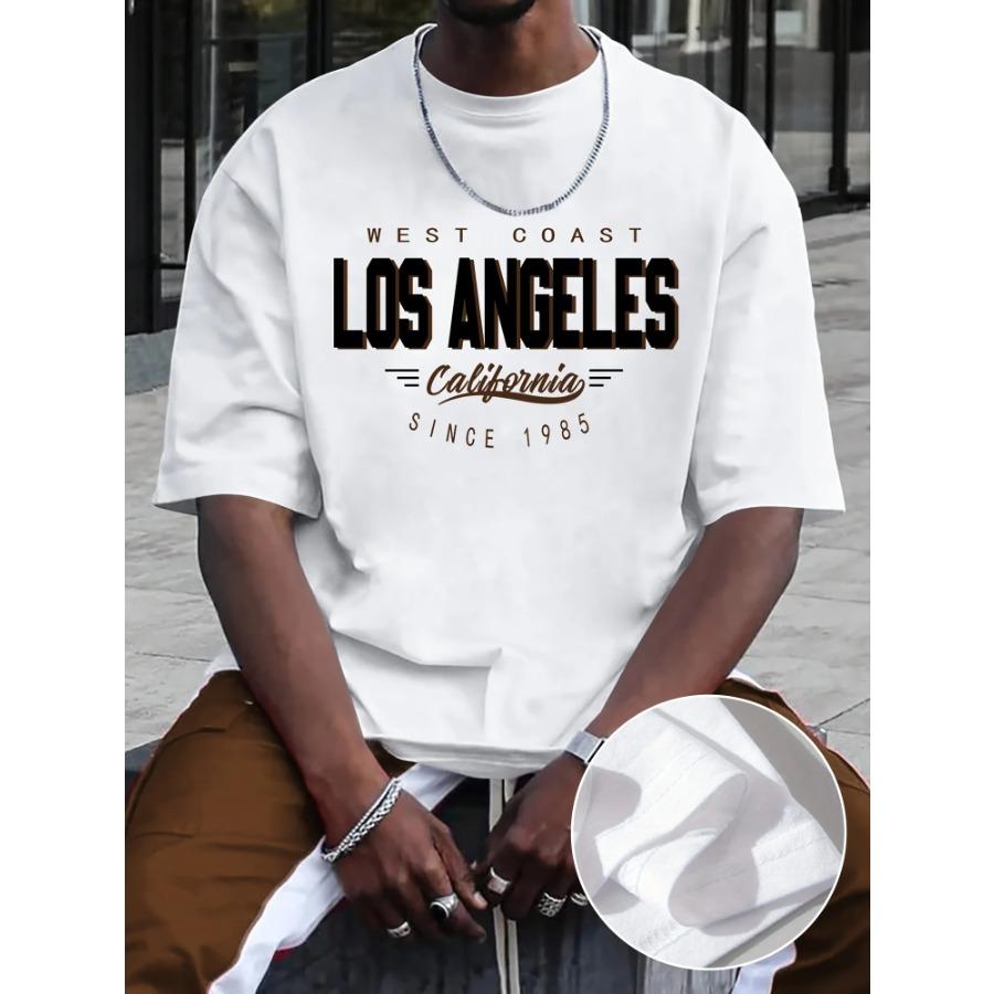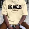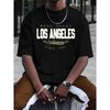 Хлопковая летняя мужская футболка из 100% хлопка, удобная, свободного покроя, большого размера, с принтом LOS ANGELES, с круглым вырезом и короткими рукавами