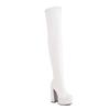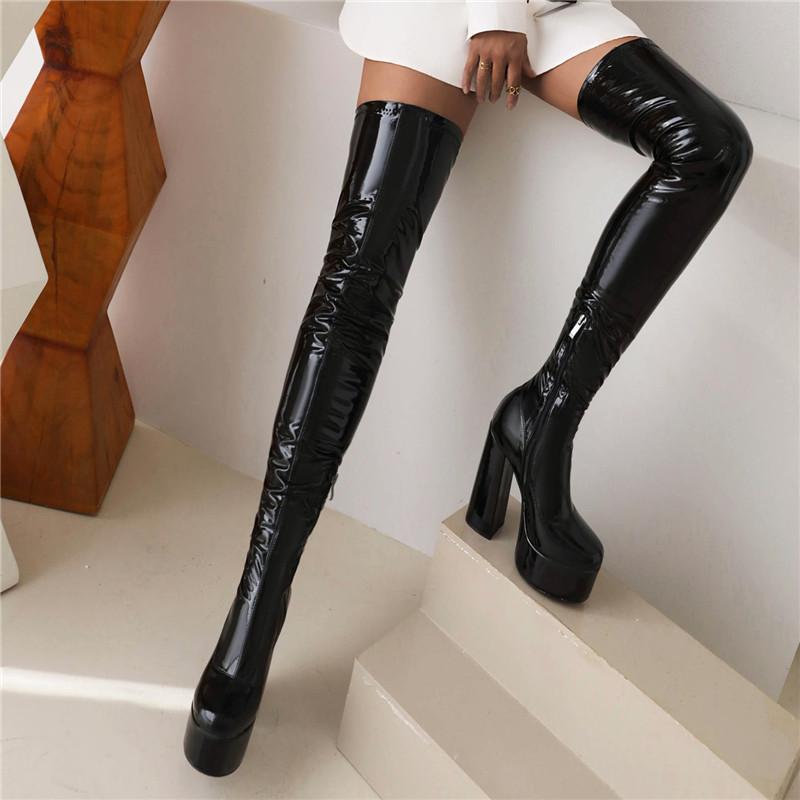 Женские сапоги на высоком каблуке, сексуальные, в европейском и американском стиле, водонепроницаемые, на толстом каблуке, однотонные, большого размера, до колена