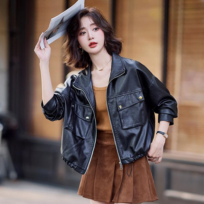Новая куртка из натуральной кожи для женщин, простая куртка из овчины, короткая куртка с отворотом высокого класса — купить товар онлайн с бесплатной доставкой по всему миру!