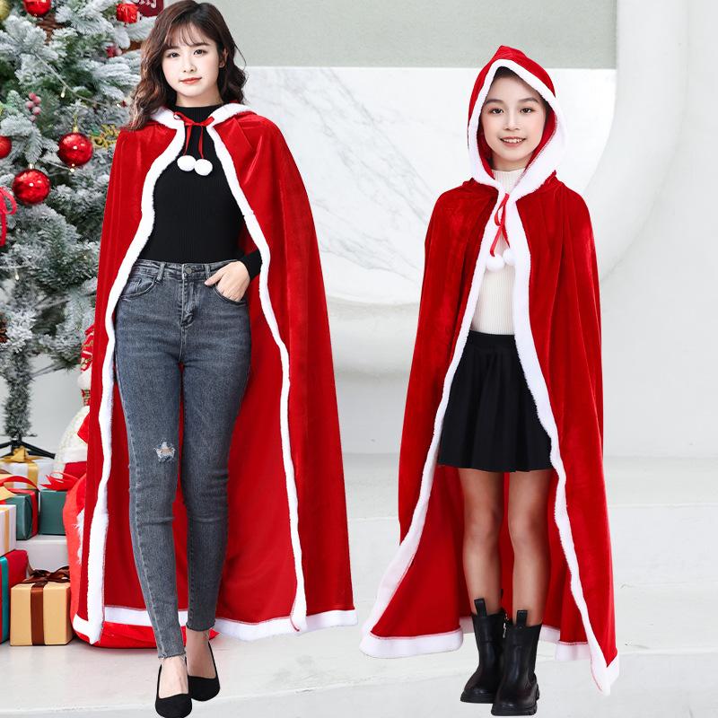 Рождественский детский взрослый красный золотой бархатный плащ с капюшоном длинный бархатный рождественский плащ