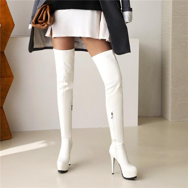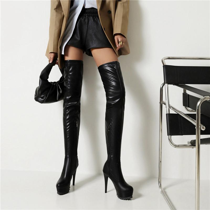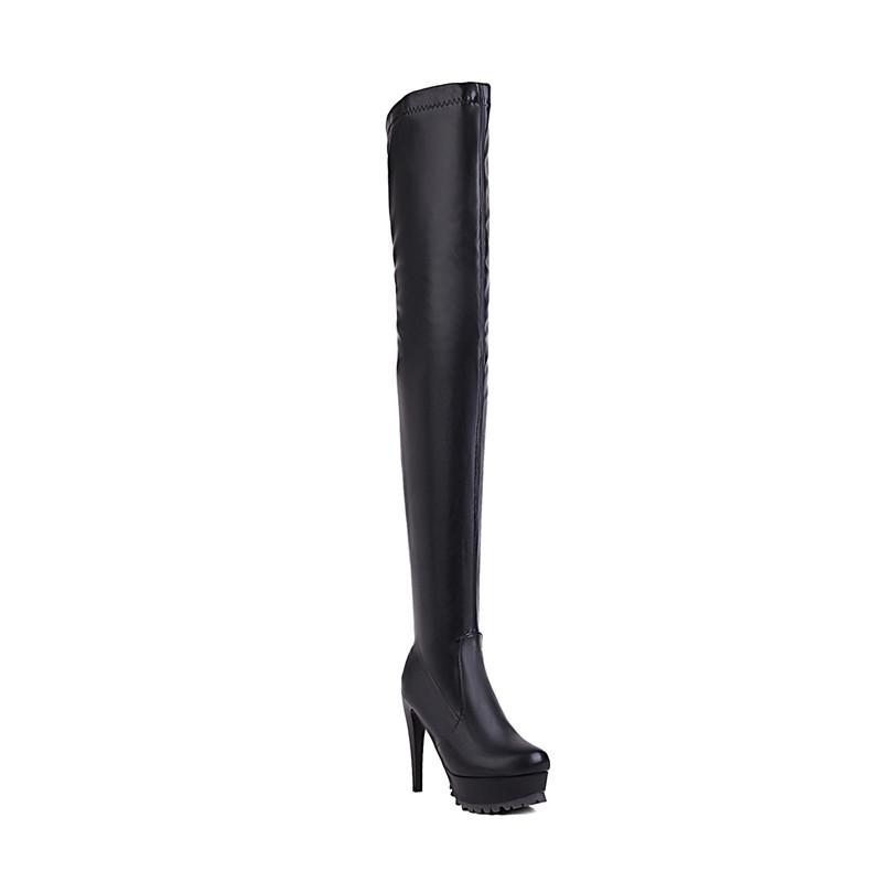Женские сапоги на высоком каблуке, сексуальные, в европейском и американском стиле, на тонком каблуке, водонепроницаемые, однотонные, большого размера, до колена