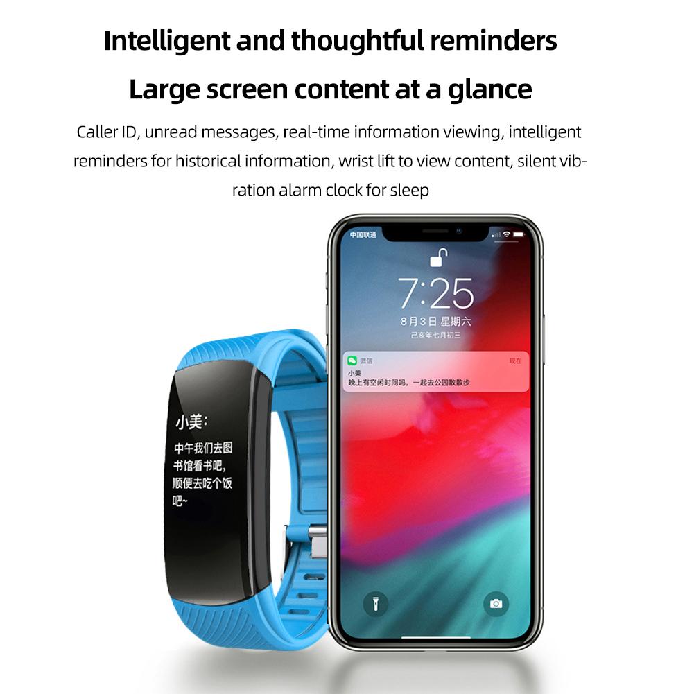 2. Цветной экран: Благодаря цветному экранному дисплею смарт-браслет позволяет пользователям четко просматривать данные о своей активности, частоте сердечных сокращений, артериальном давлении, уровне кислорода в крови и другую информацию о мониторинге здоровья.
