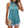 Летний женский жилет с вырезом на шее, топ с отверстием для ключа, футболка без рукавов, свободного кроя
