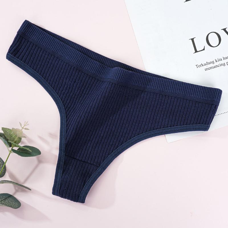 Женское простое удобное нижнее белье-стринги, женские трусики-стринги с низкой талией в вертикальную полоску из хлопка