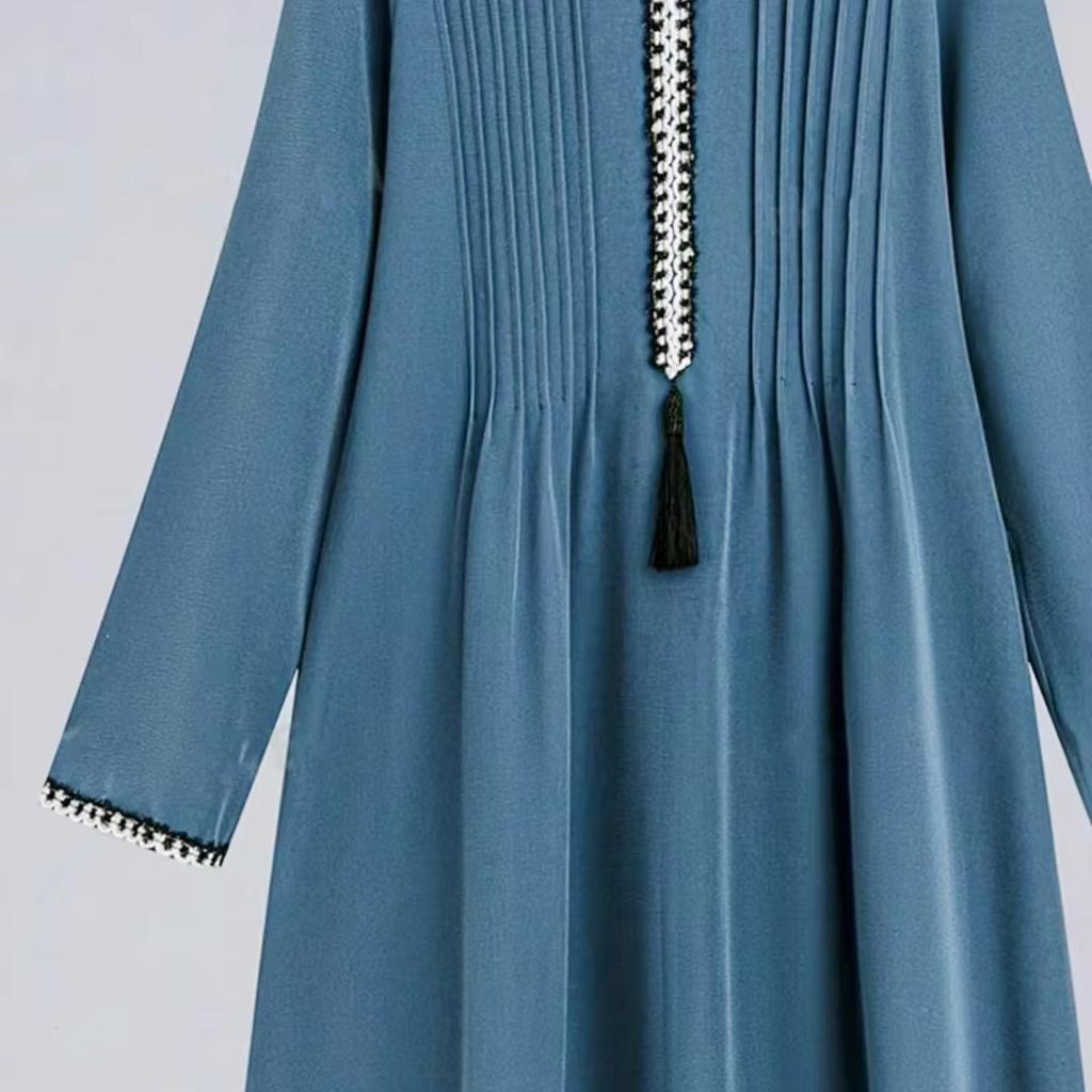 Женское плиссированное повседневное арабское платье с V-образным вырезом и длинным рукавом, кафтан, одежда, женские макси-платья