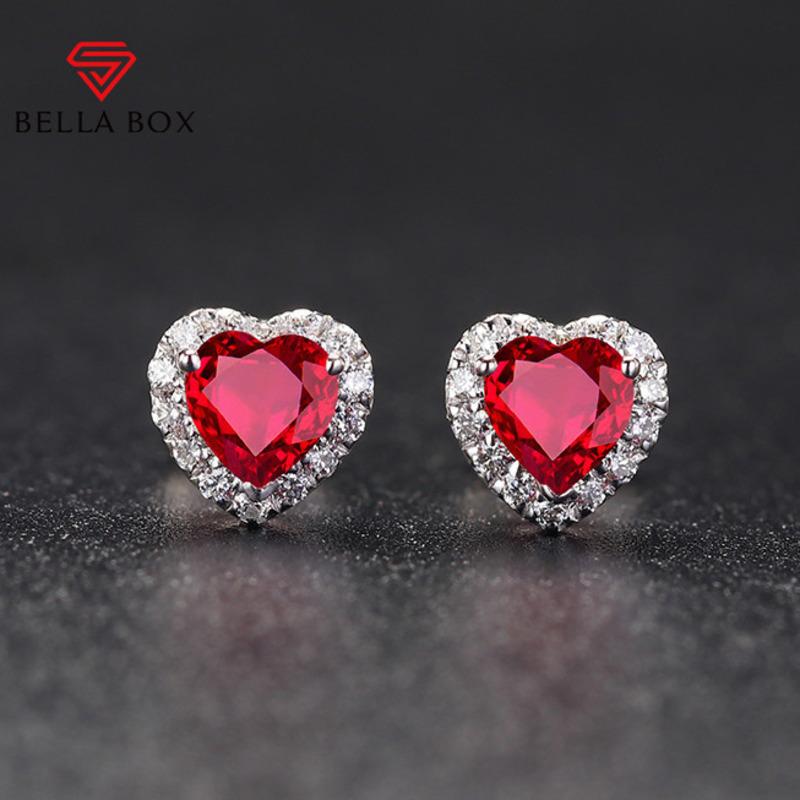 BELLA BOX Новая корейская версия сладких рубиновых сережек в форме сердца, женские темпераментные серьги Love Color Treasure для подарка на день рождения ее подруги