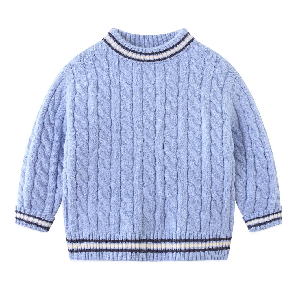 Детский однотонный свитер с круглым вырезом и толстой вязкой на зиму