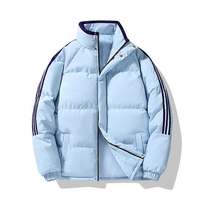 2024 зима новый однотонный ленивый воротник-стойка хлопковая одежда утолщенная теплая куртка три полоски студенческая хлопковая подкладка одежда