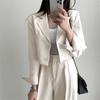 Женский весенний однотонный простой пригородный костюм с длинным рукавом, короткий пиджак + брюки, комплект из двух предметов