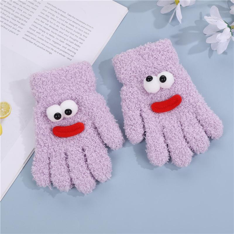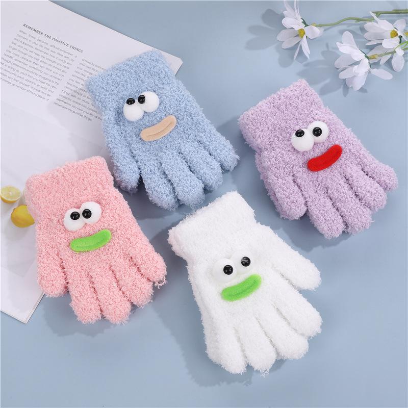 Перчатки с раздельными пальцами нового стиля, теплые зимние перчатки из кораллового бархата, вязаные шерстяные перчатки с рисунком для мужчин и женщин, многоцветные