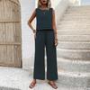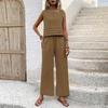 Женский модный повседневный однотонный короткий топ без рукавов с эластичной резинкой на талии, комплект из двух предметов