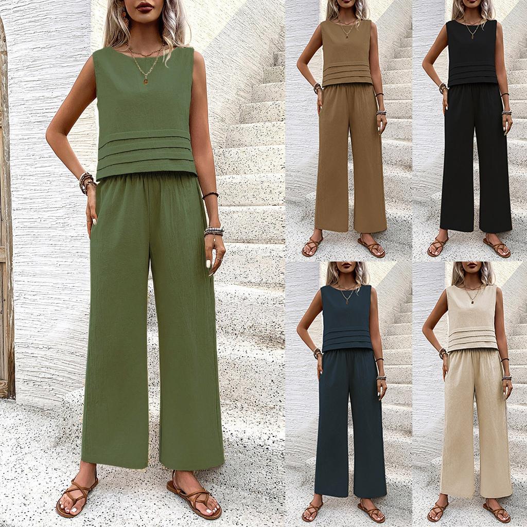 Женский модный повседневный однотонный короткий топ без рукавов с эластичной резинкой на талии, комплект из двух предметов — купить товар онлайн с бесплатной доставкой по всему миру!