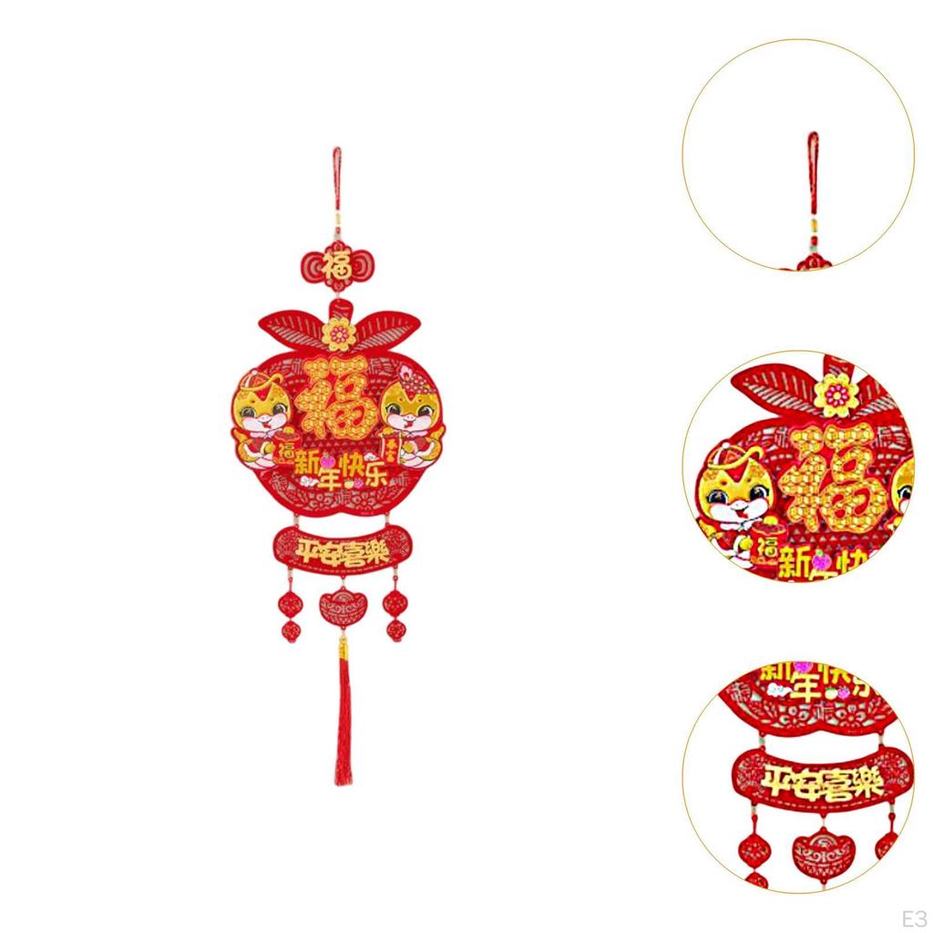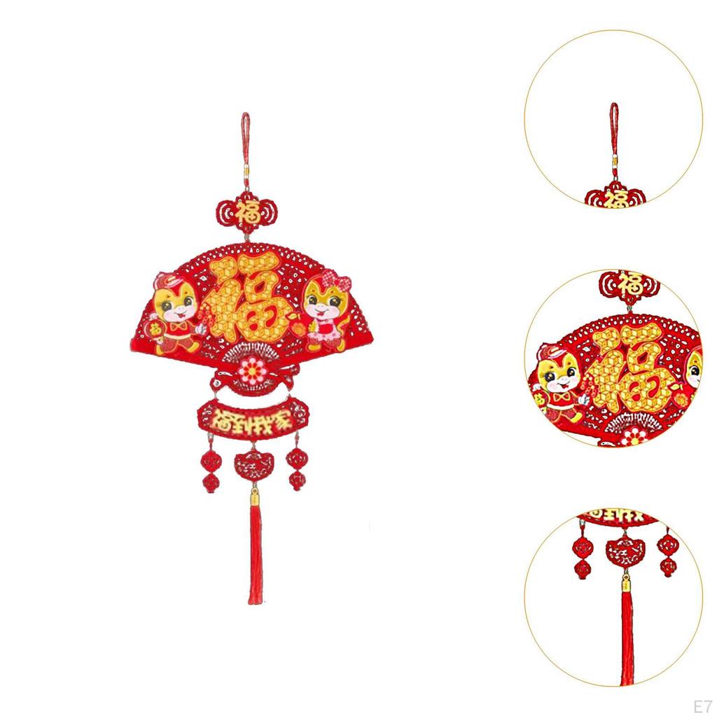 - 【Тонкое мастерство】: Подвески в стиле Лунного Нового года используют традиционные элементы праздника Весны. Нижняя часть украшена кисточками.. Он также сочетается с различными традиционными китайскими словами.. В целом это изящно и символизирует удачу.