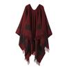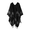 Полосатая шаль, женская накидка, вязаное офисное одеяло, теплая накидка с бахромой