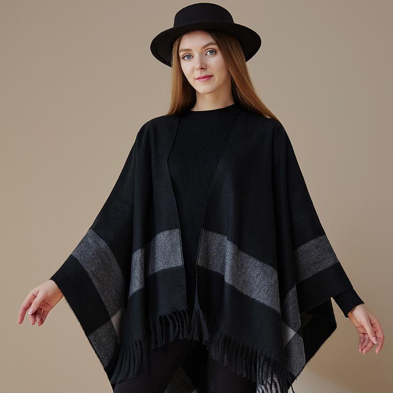 Полосатая шаль, женская накидка, вязаное офисное одеяло, теплая накидка с бахромой — купить товар онлайн с бесплатной доставкой по всему миру!
