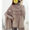 Плащ с высоким воротом и бахромой, большой размер, длинный рукав, трикотажный однотонный внешний плащ, шаль