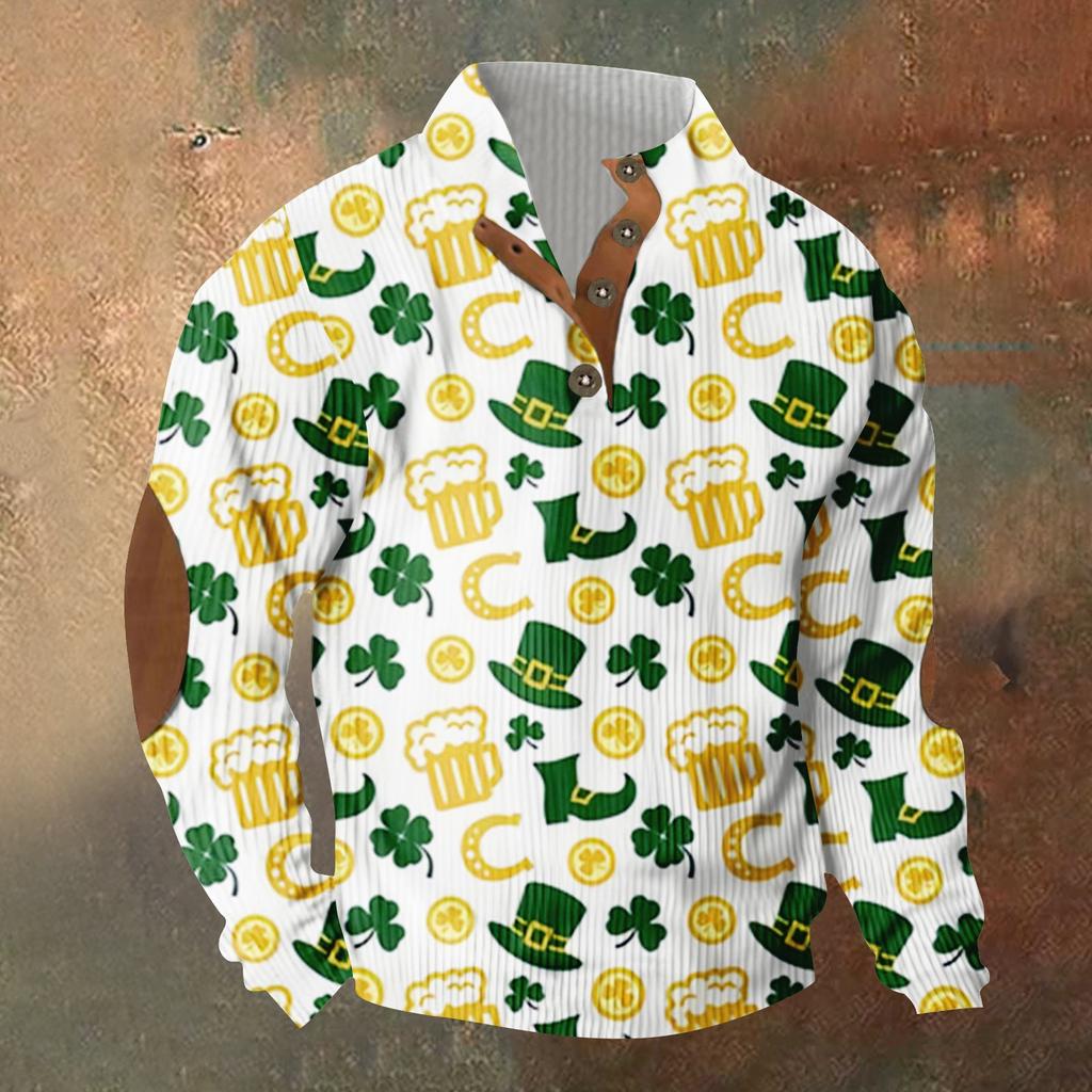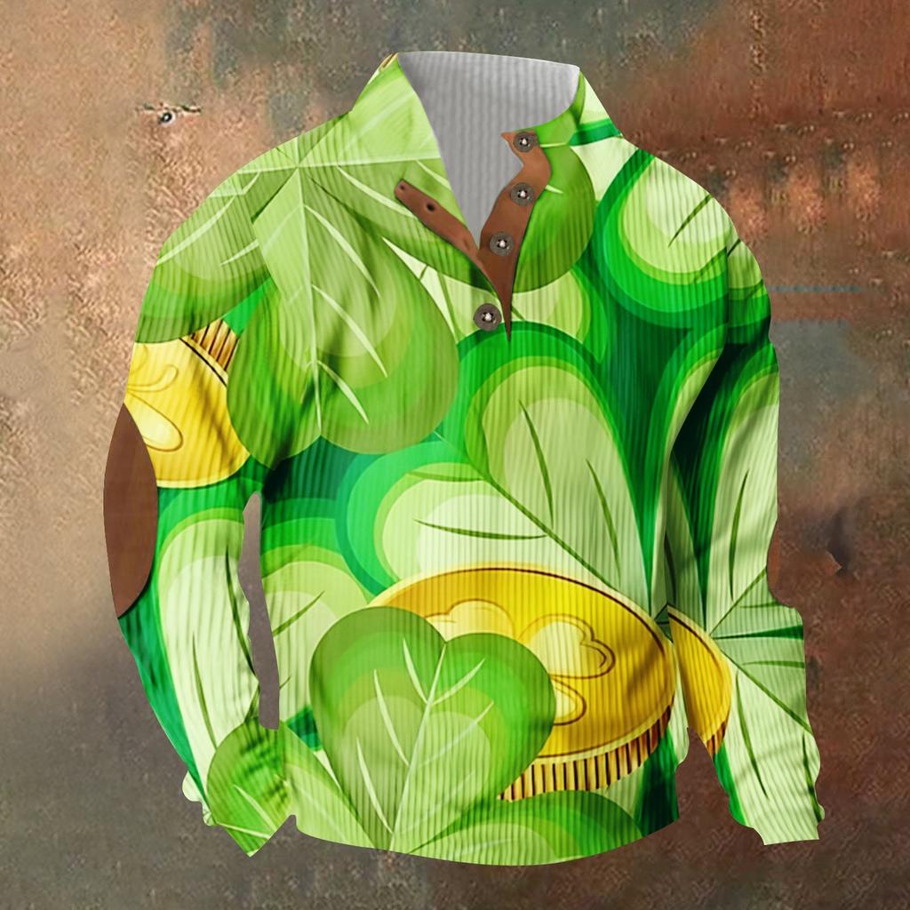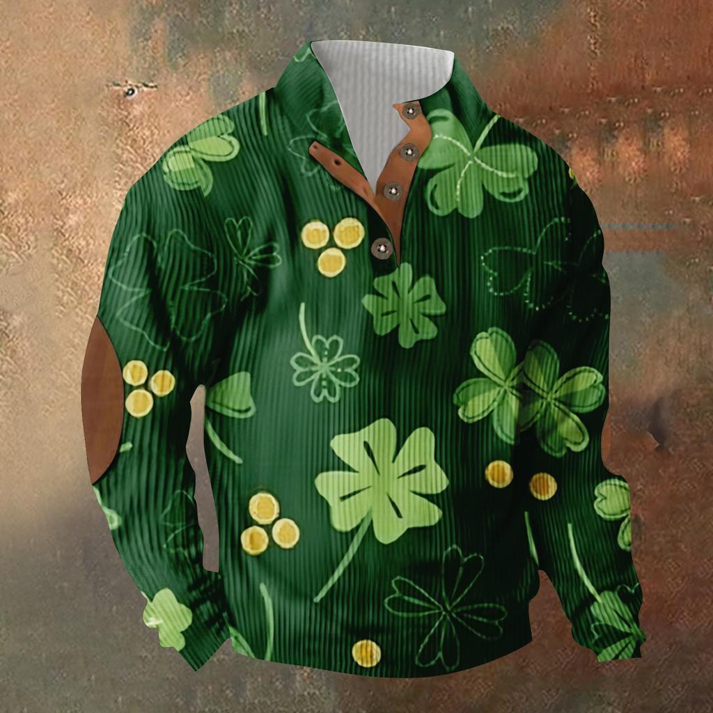 Трикотажный принт на 3 пуговицах - вельветовый мужской свитшот со стоячим воротником и карманом, повседневный свитшот на пуговицах для активного отдыха