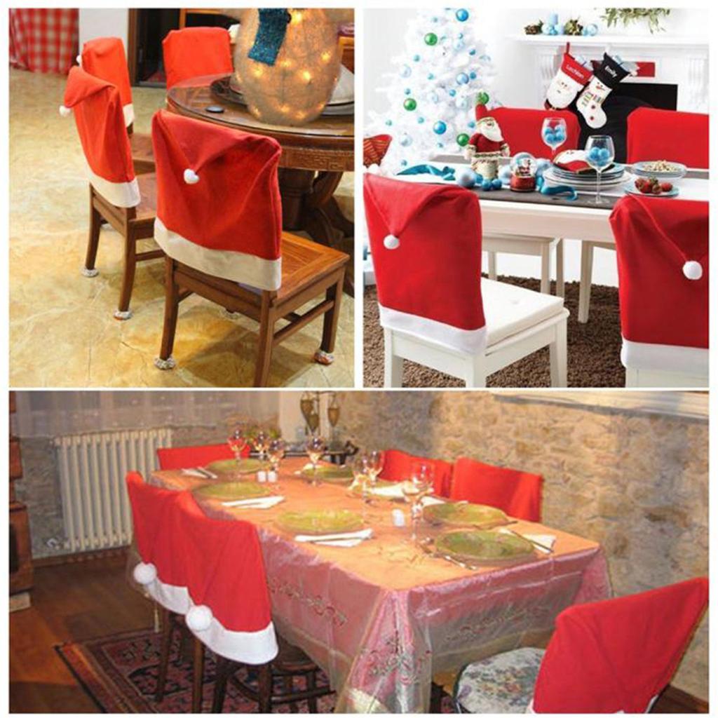 6PCS Санта шляпа чехлы на стулья рождественский декор обеденный стул рождественские колпачки