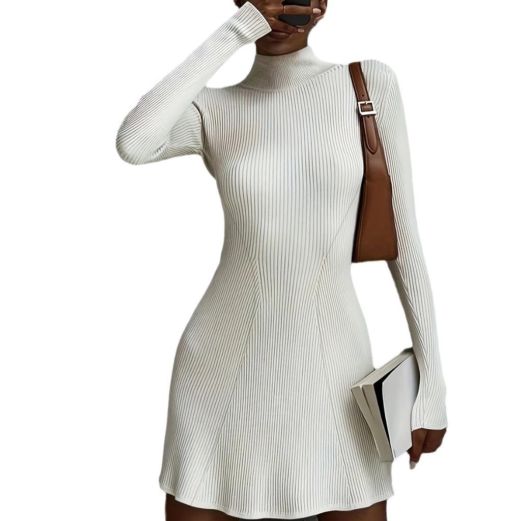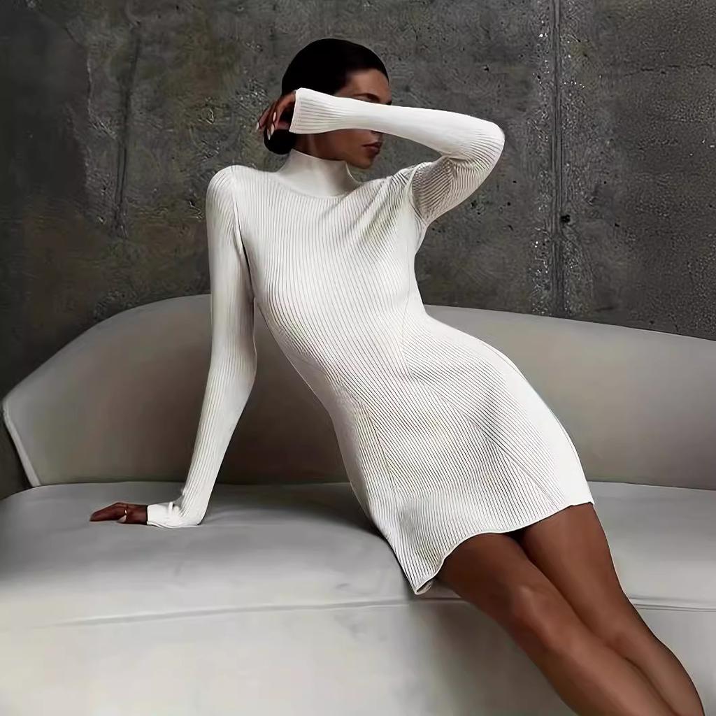 Женское однотонное длинное рукава полуворотник сексуальное обтягивающее короткое трикотажное платье