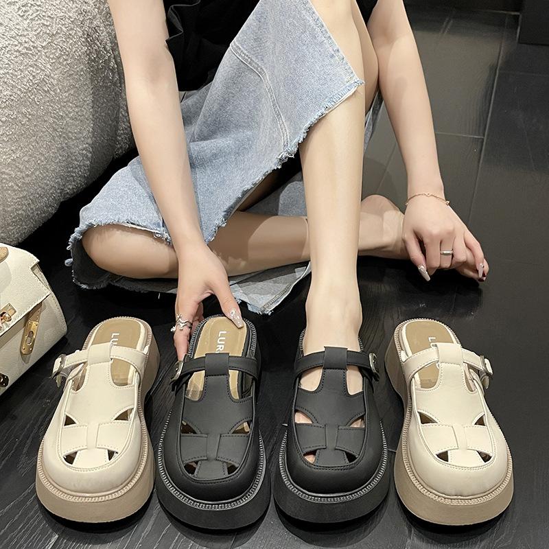 Полые тапочки женская летняя одежда новые резиновые туфли на толстой подошве сандалии повседневный стиль