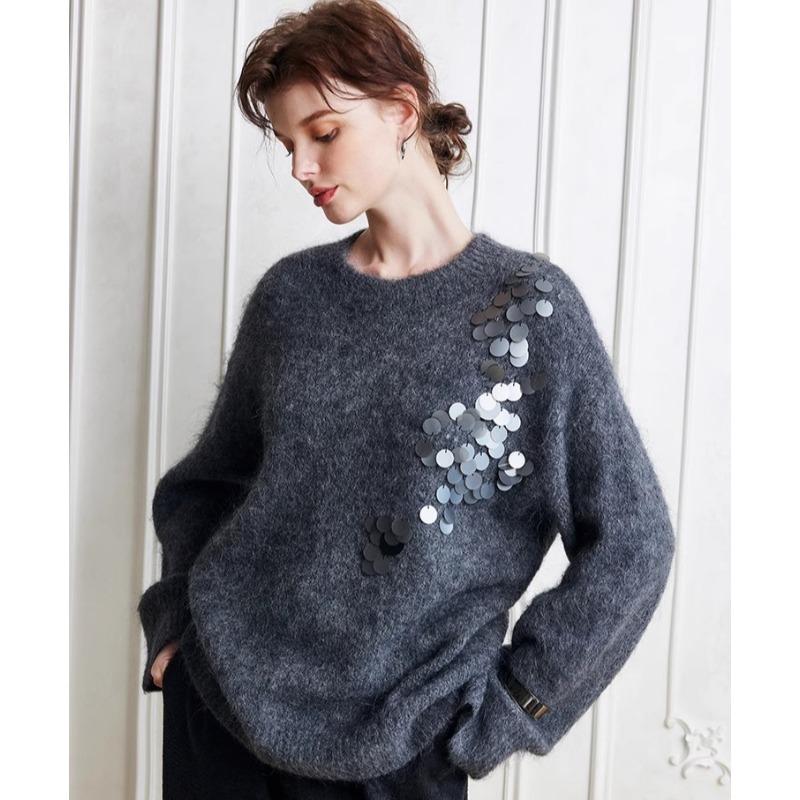 Dimanaf 2025 Женские свитера Весна Пайетки Вязание O-образный вырез Свободные свитера Топы — купить товар онлайн с бесплатной доставкой до всему миру!