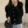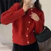 Осенний кардиган нежной вязки для женщин с пуговицами в виде сердечек, короткий, свободный, с длинными рукавами, куртка-свитер, модный, универсальный, на каждый день