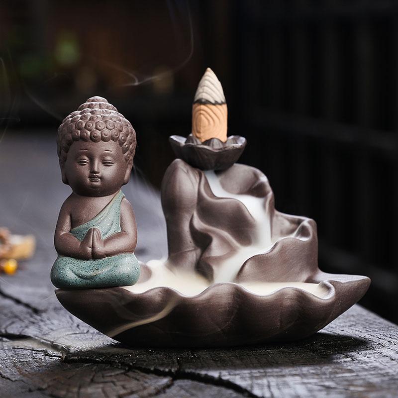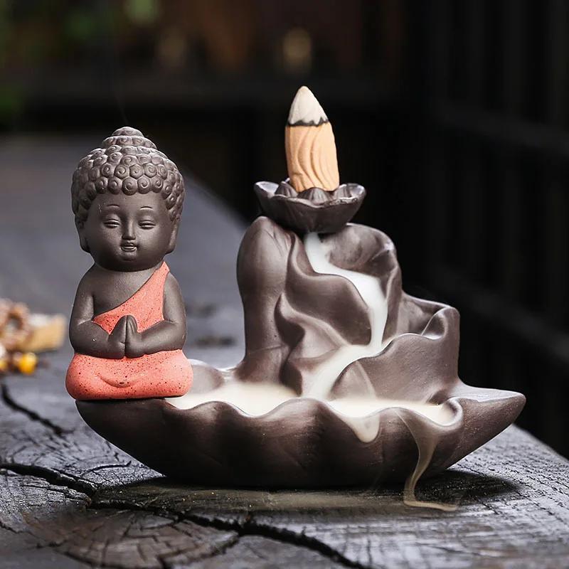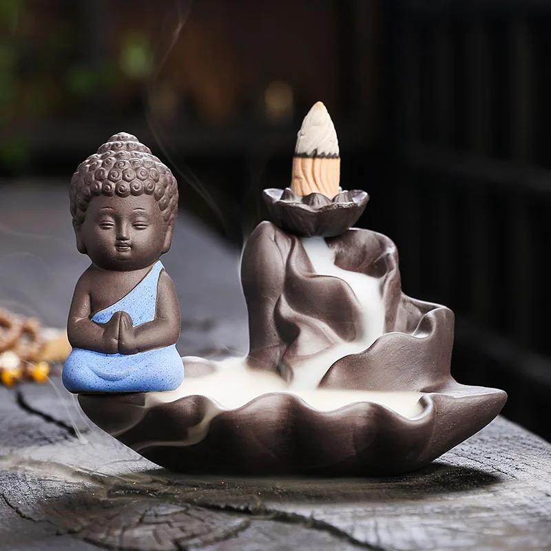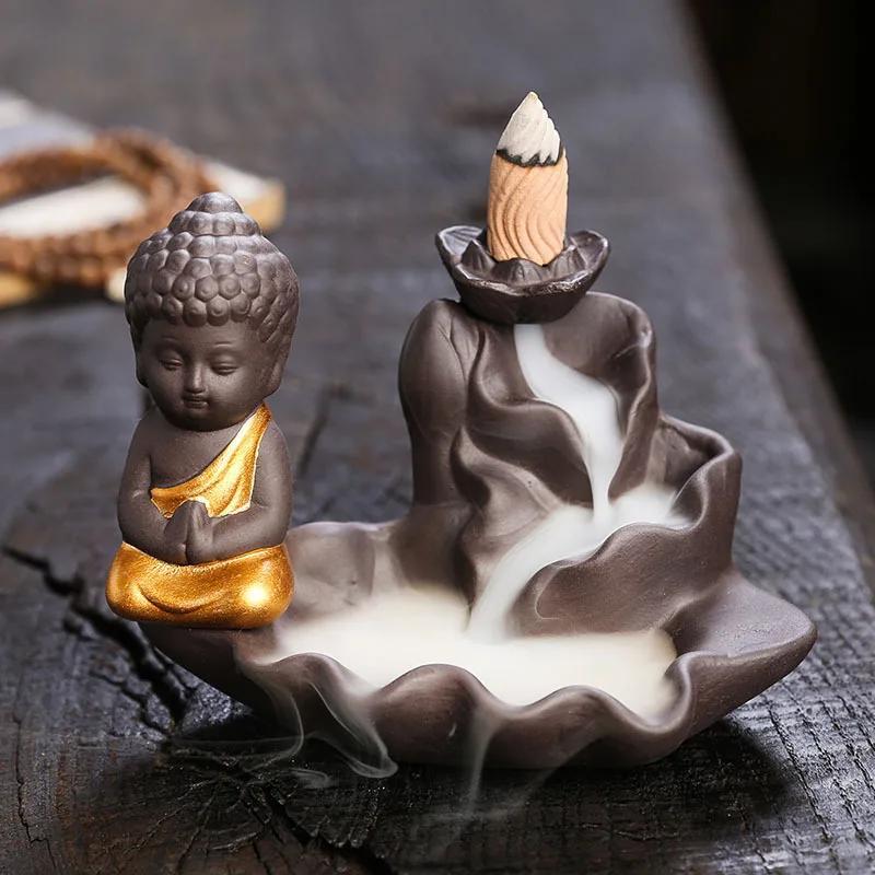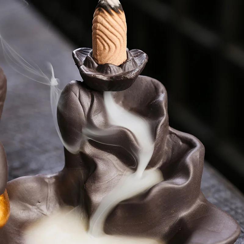 1 шт., Дзен Будда Керамические изделия ручной работы Лотос Украшения для дома Курильница с обратным потоком (Без благовоний)