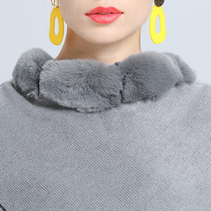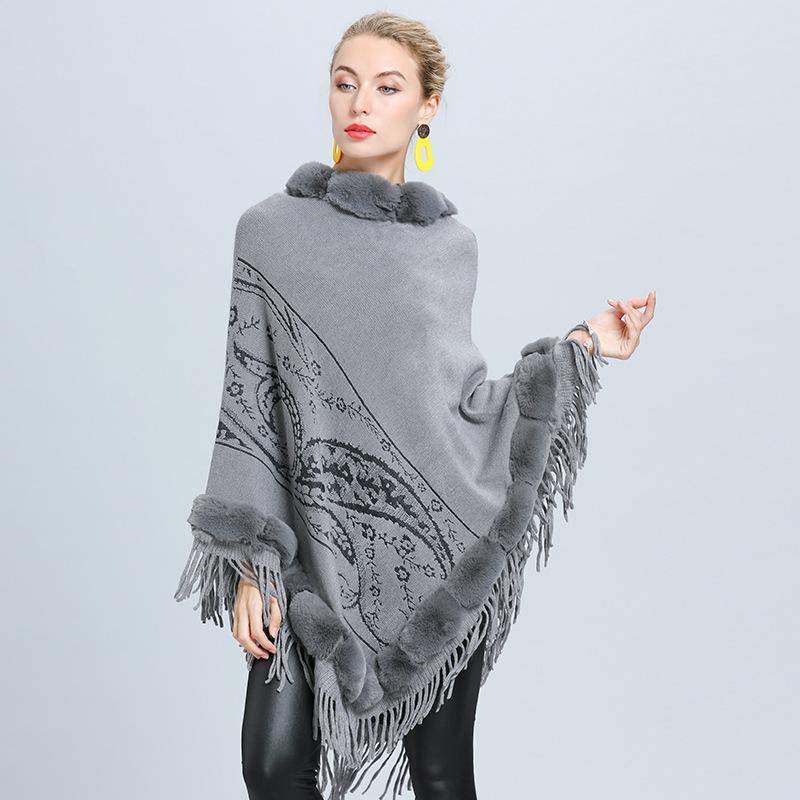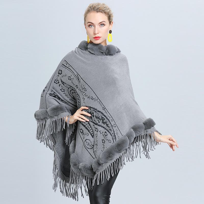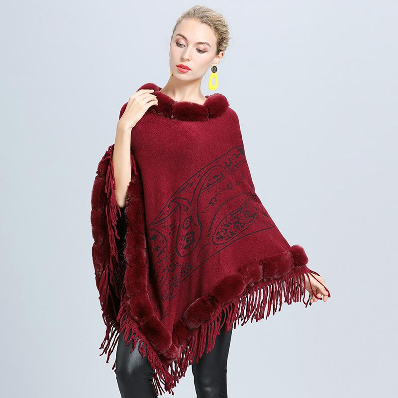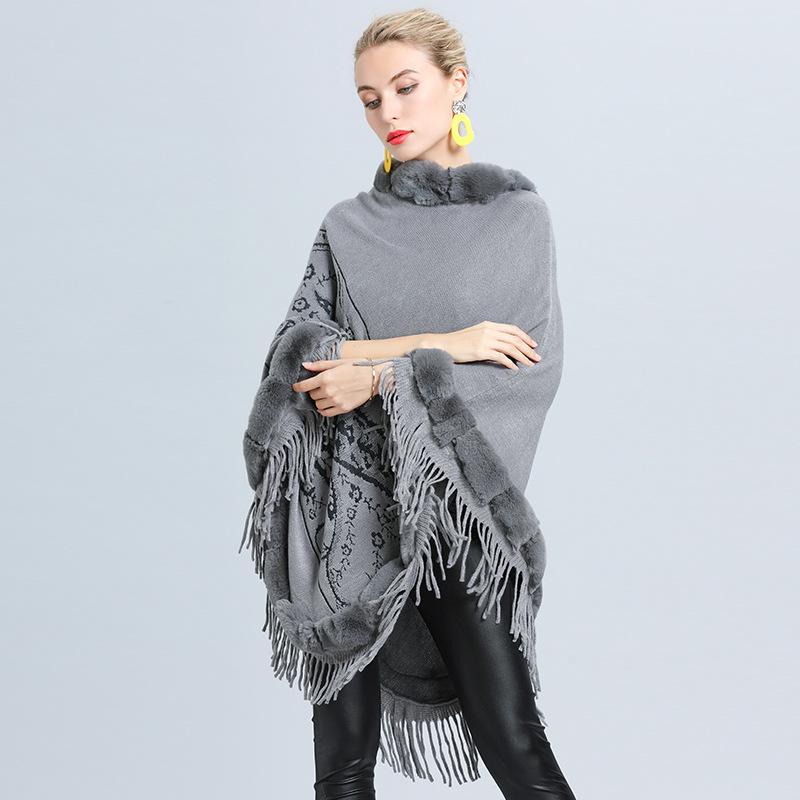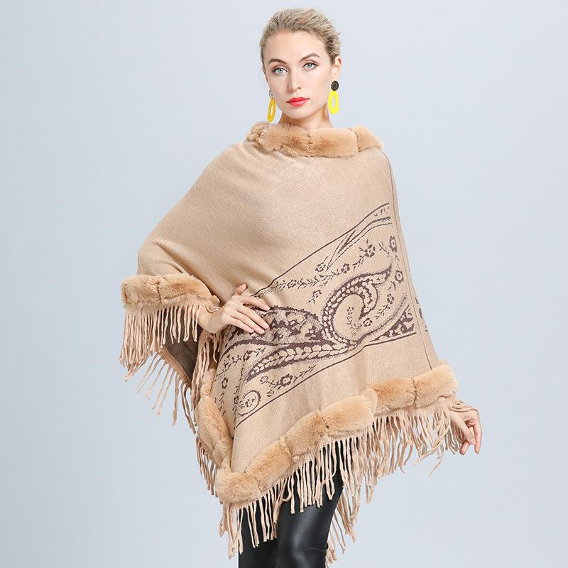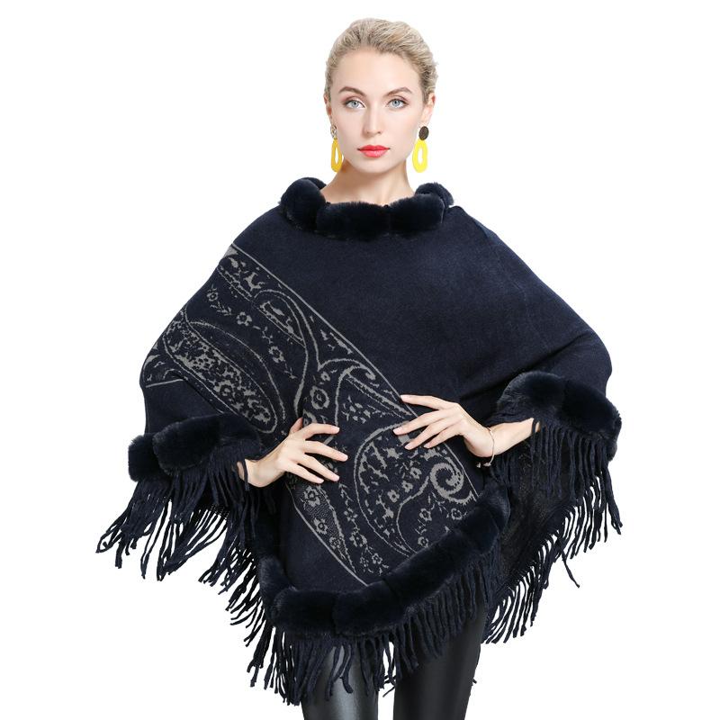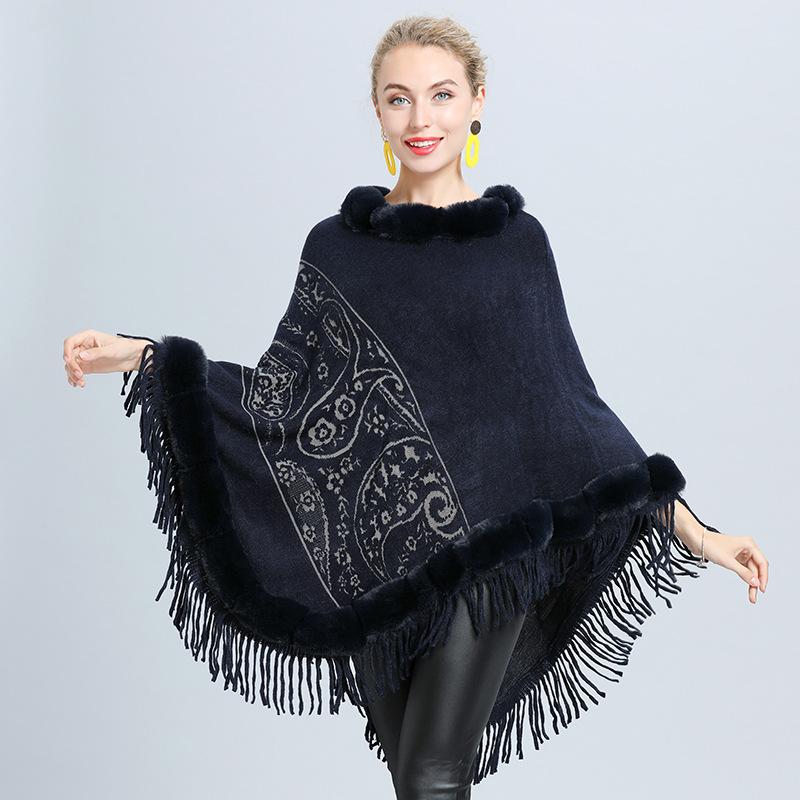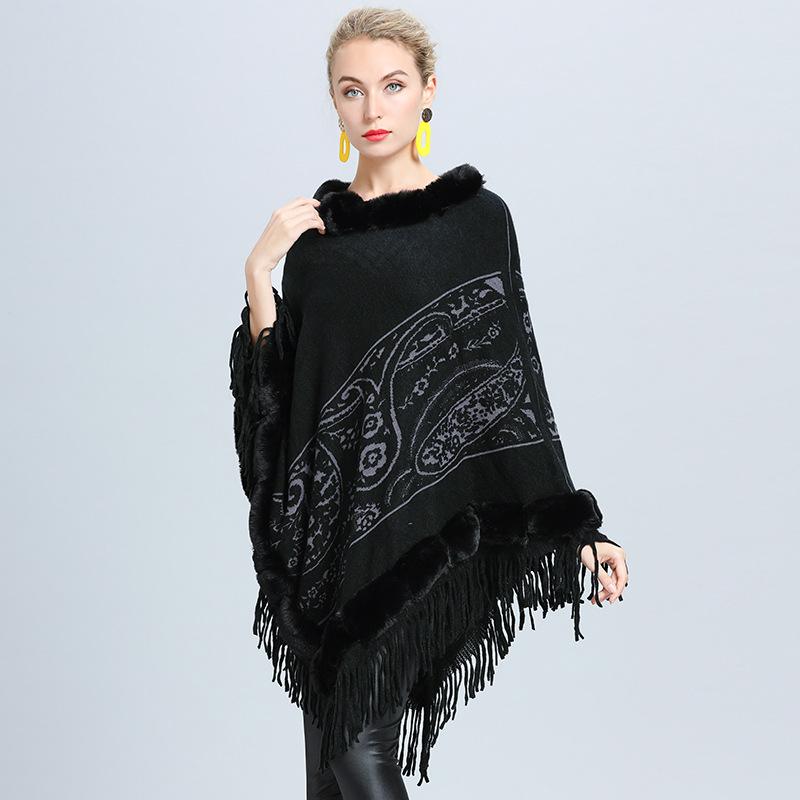 1646 #Прямые поставки для женщин вязаный внешний меховой воротник жаккардовая накидка с бахромой шаль