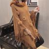 Кроличий пучок шерсти женская свободная верхняя одежда меховой воротник рубашка Бэтмен шаль окружность теплая бахрома накидка тип вязаная шаль для женщин