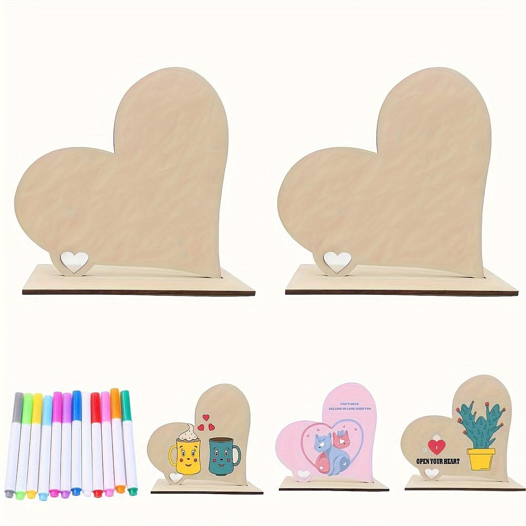 Большой размерный ряд: 2pcs Love Wooden Ornaments + 12pcs Watercolor Pens