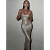 Сексуальное блестящее длинное платье с бретельками через шею, женское элегантное платье без рукавов с открытой спиной и V-образным вырезом, с высокой талией, блестящее вечернее платье А-силуэта, новая мода