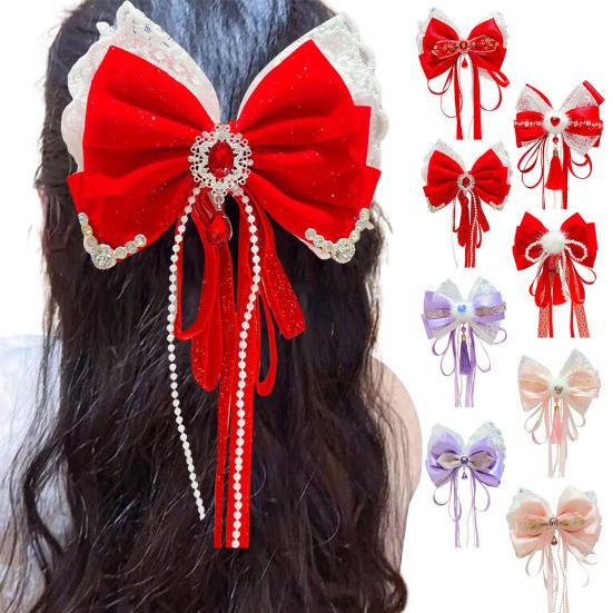 Добавьте нотку элегантности к вашему образу на китайский Новый год с помощью этой изысканной заколки для волос с кружевом и искусственными стразами.. Дизайн с бантом и кисточками излучает праздничное очарование и идеально подходит для стильного празднования события..
