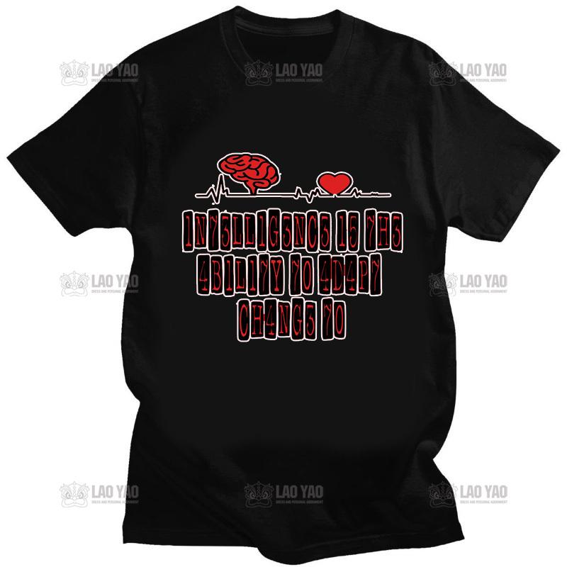 Креативные мужские футболки, забавные топы Geek, интеллект — это способность адаптироваться к изменению, футболка с буквенным принтом, мужская футболка большого размера