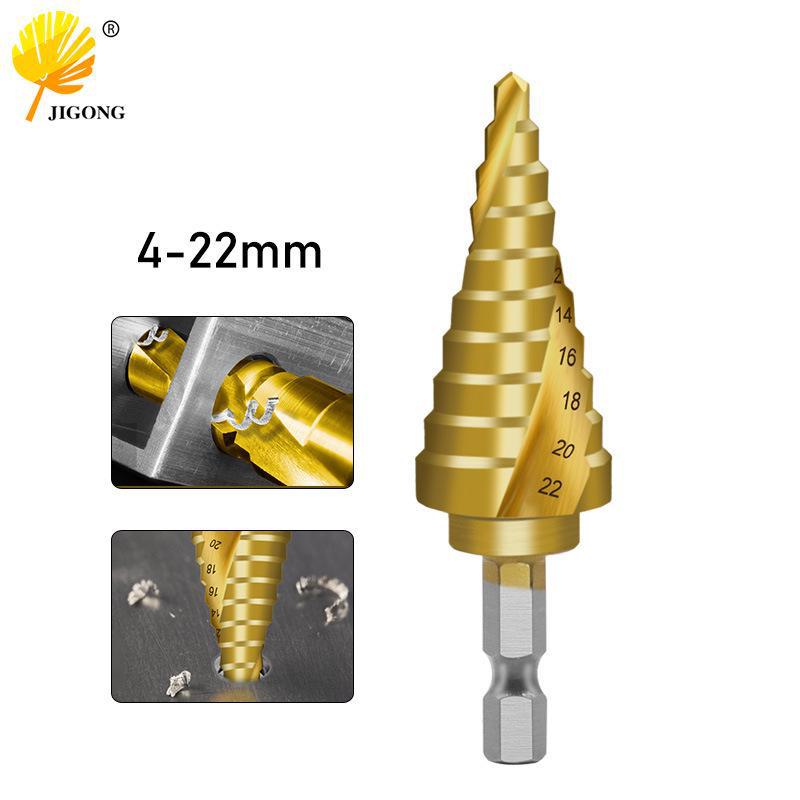 Ступенчатое сверло с титановым покрытием 4-22 мм со спиральной канавкой и шестигранным хвостовиком