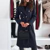 Женское однотонное пальто средней длины с лацканами, модное однотонное двубортное шерстяное пальто с кружевом