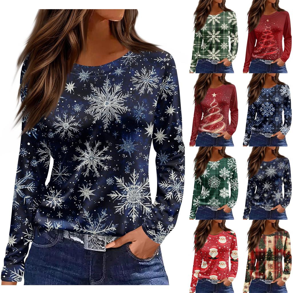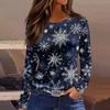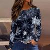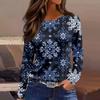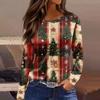 Длинные рукава женские топы цветочный принт винтажная мода повседневные свободные с R-образным вырезом рубашки больших размеров Рождество