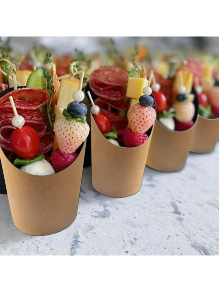 50 шт. держатель для картофеля фри из крафт-бумаги стаканчик для картофеля фри стаканчик для колбасных изделий закуска десерт картофельные чипсы коробка одноразовые принадлежности для вечеринок