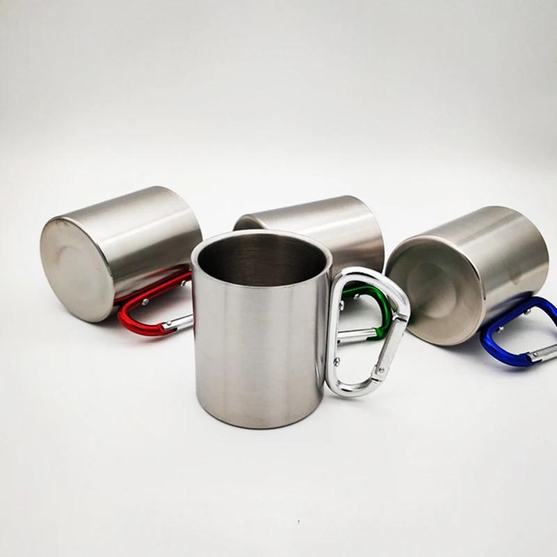 200 мл Кружка из нержавеющей стали Уличная кружка с ручкой Для кемпинга Путешествий Карабин Альпинизм Туризм Портативные кружки