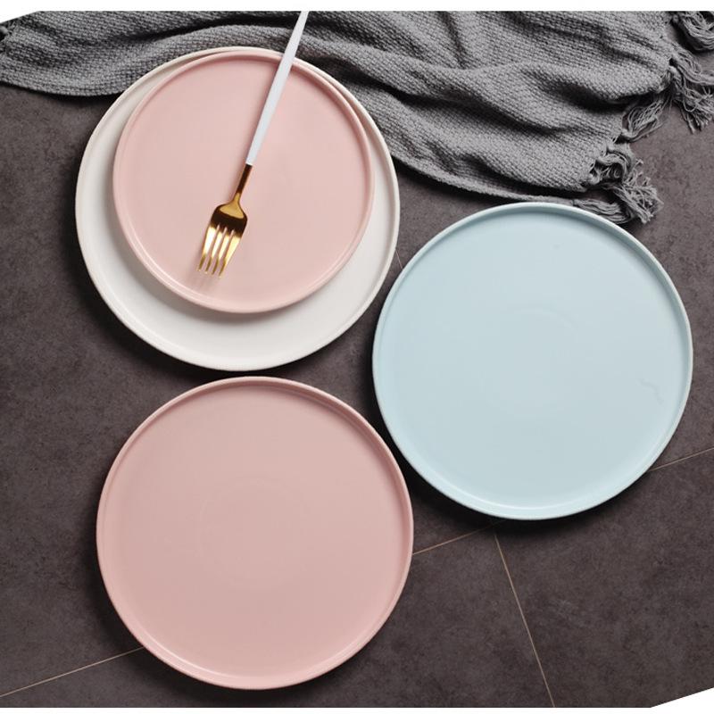 Круглые цельные обеденные тарелки Матовые керамические плоские подносы для стейков Посуда для говядины Спагетти Салат Кухонная посуда Десертные тарелки