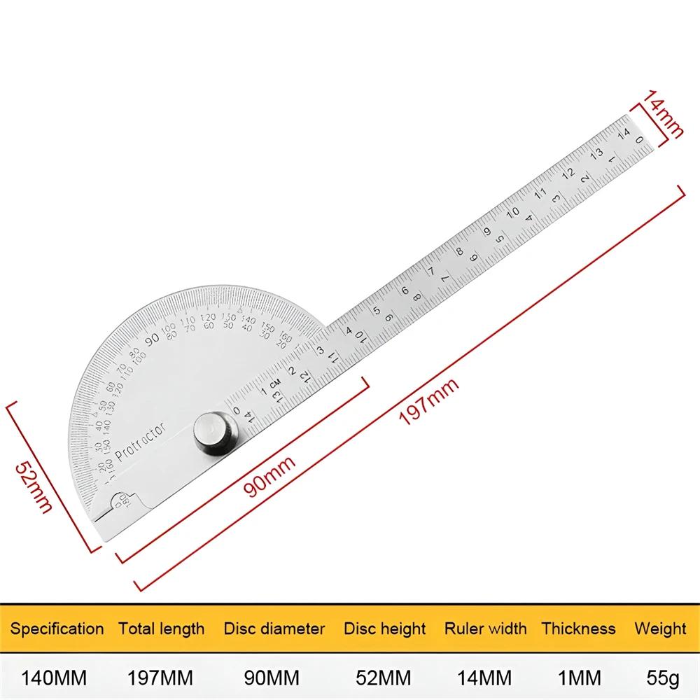 180-градусный угломер, угломер, измерительный прибор, транспортир, линейка, металлоискатель, инструмент для деревообработки из нержавеющей стали