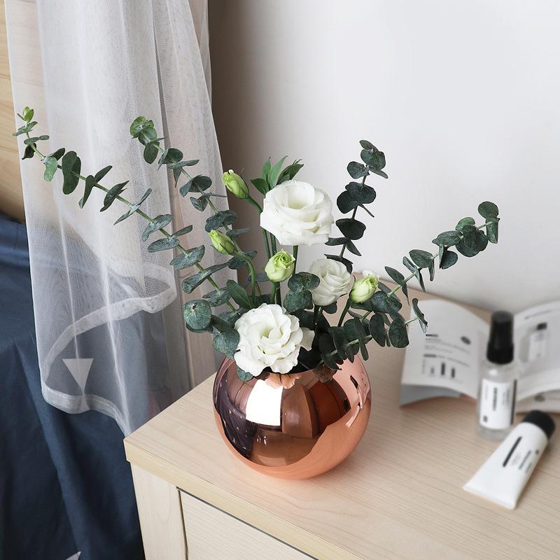 Ваза из нержавеющей стали в скандинавском стиле, настольный цветочный горшок BeFlower, цвет: золотистый, черный, розовое золото, классический домашний декор