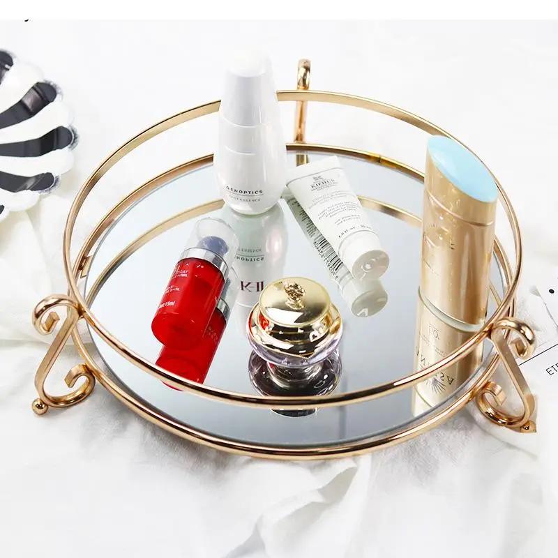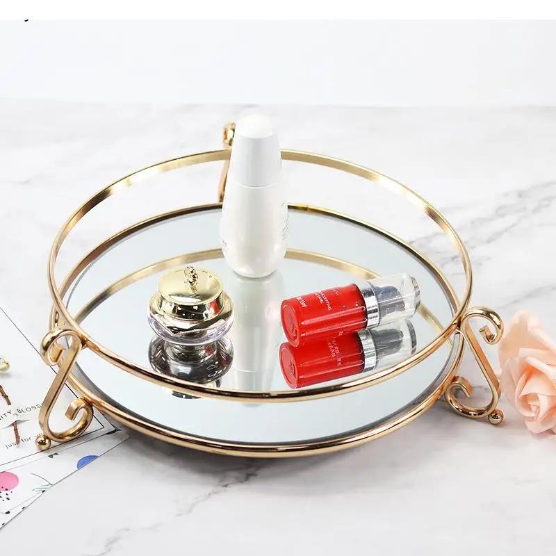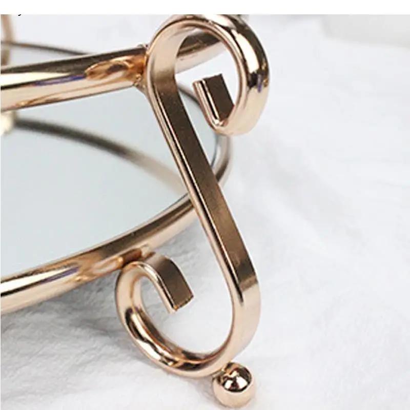 Европейский стиль Домашний стеклянный зеркальный лоток для хранения Креативный геометрический кованый дисплей с круглыми орнаментами