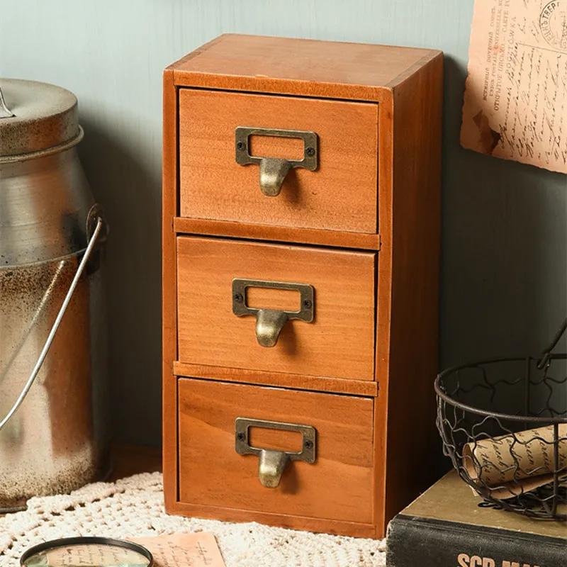Ретро Маленький трехслойный деревянный ящик для хранения кухонных специй, игрушек, косметики, ювелирных изделий, домашний декор, настольная коробка