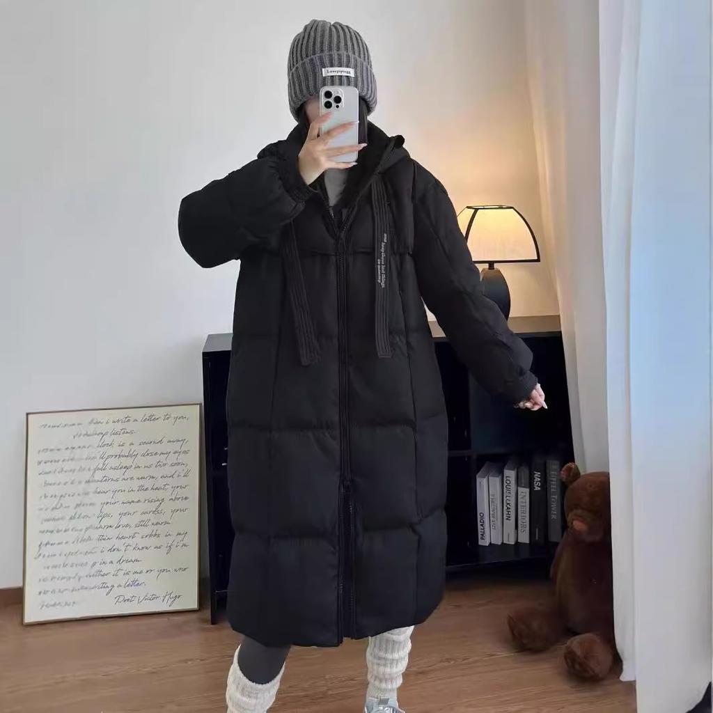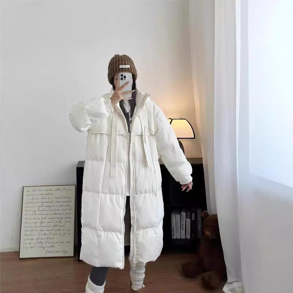 Длинная женская куртка-пуховик зима 2024 новая модная свободная утолщенная до колена белая повседневная куртка на утином пуху