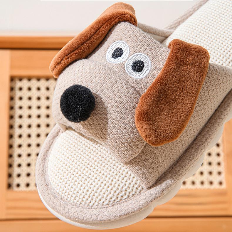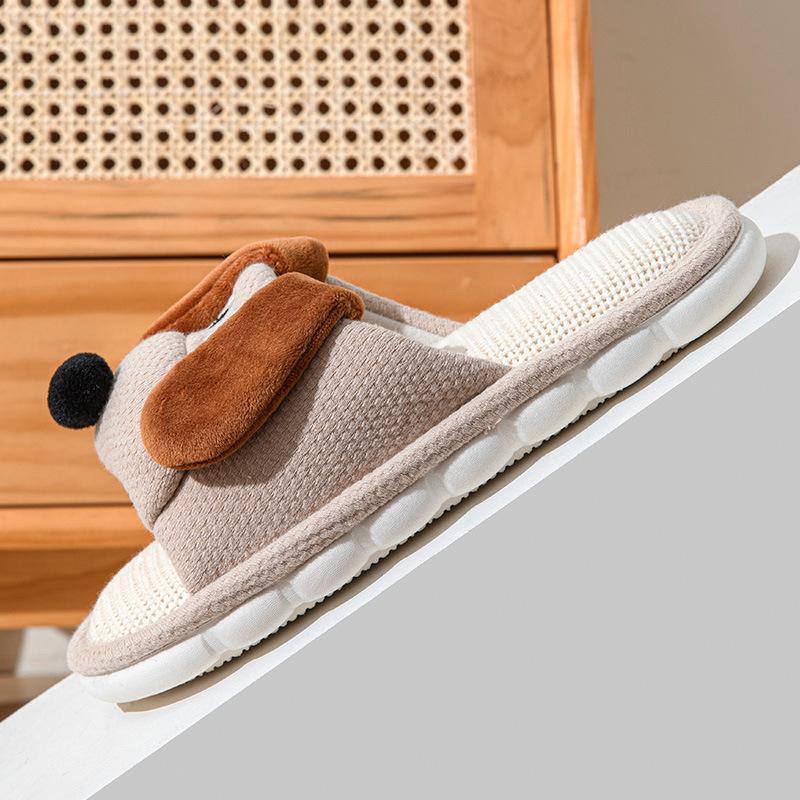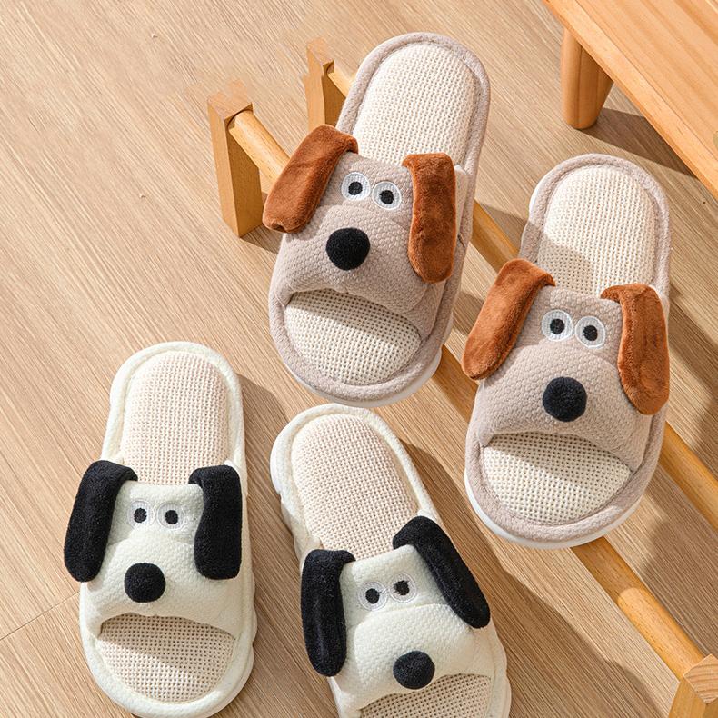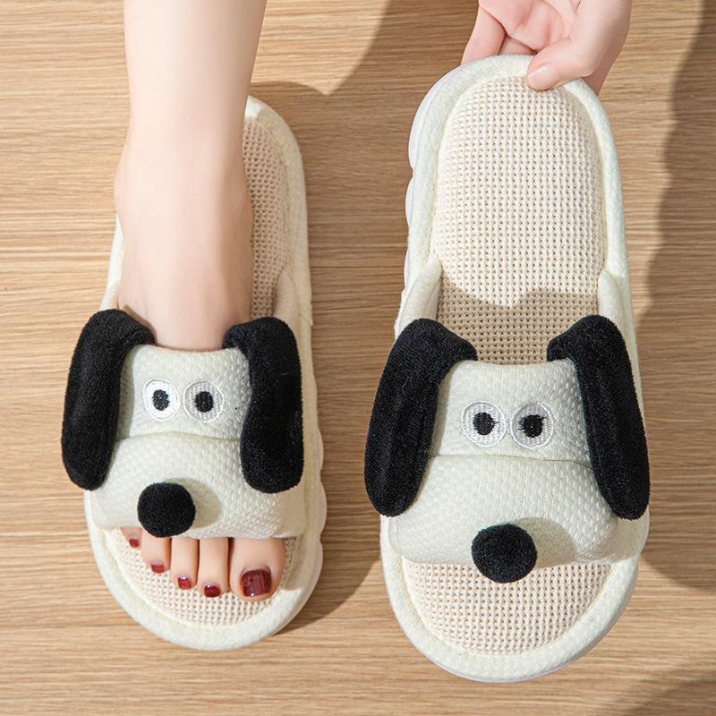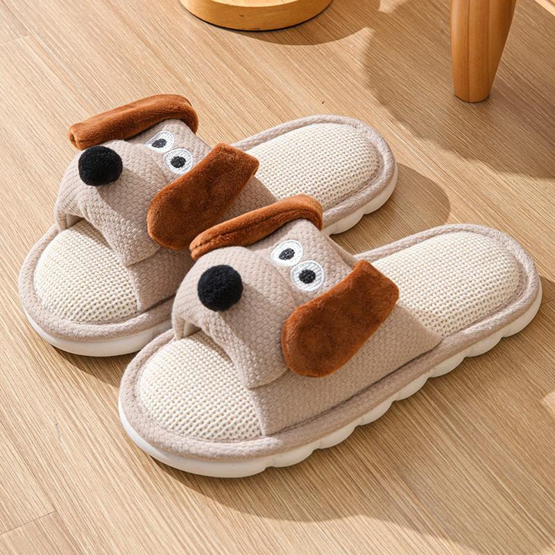 Унисекс, лето, весна, осень, большой размер, мультяшная собака, домашние льняные тапочки, повседневные нескользящие домашние тапочки, обувь для пар 36-45