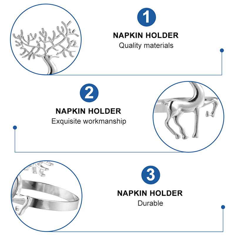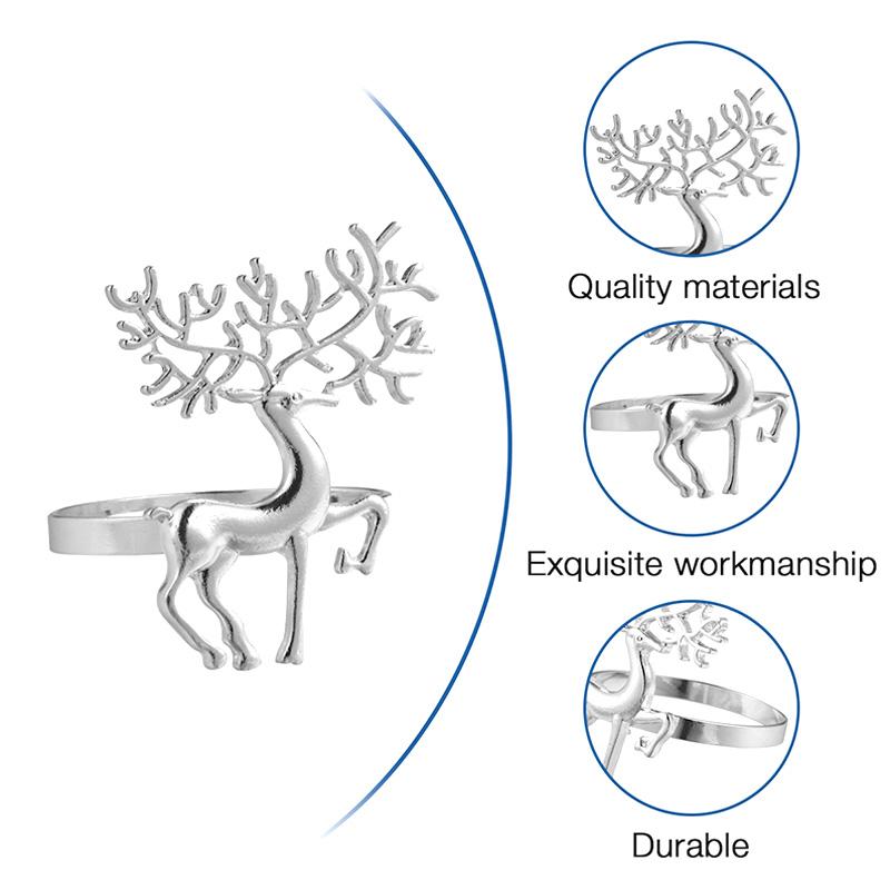 Это рождественские декоративные пряжки для салфеток, которые изготовлены из высококачественного материала. Он имеет изысканный дизайн оленей, который подходит для рождественской атмосферы. В рождественском праздничном ужине это увеличит атмосферу фестиваля, с некоторым фестивальным реквизитом, эффект лучше. Он подходит для праздничных вечеринок, кухонь, торговых центров, баров и т. Д.