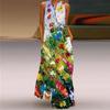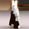 Женская мода лето весна цветочный принт без рукавов V-образный вырез свободные повседневные платья